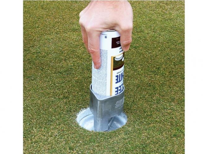 Bare stik spray'en i maleredskabet og rotér. Indbygget barriere forhindrer at man over-spray'er.